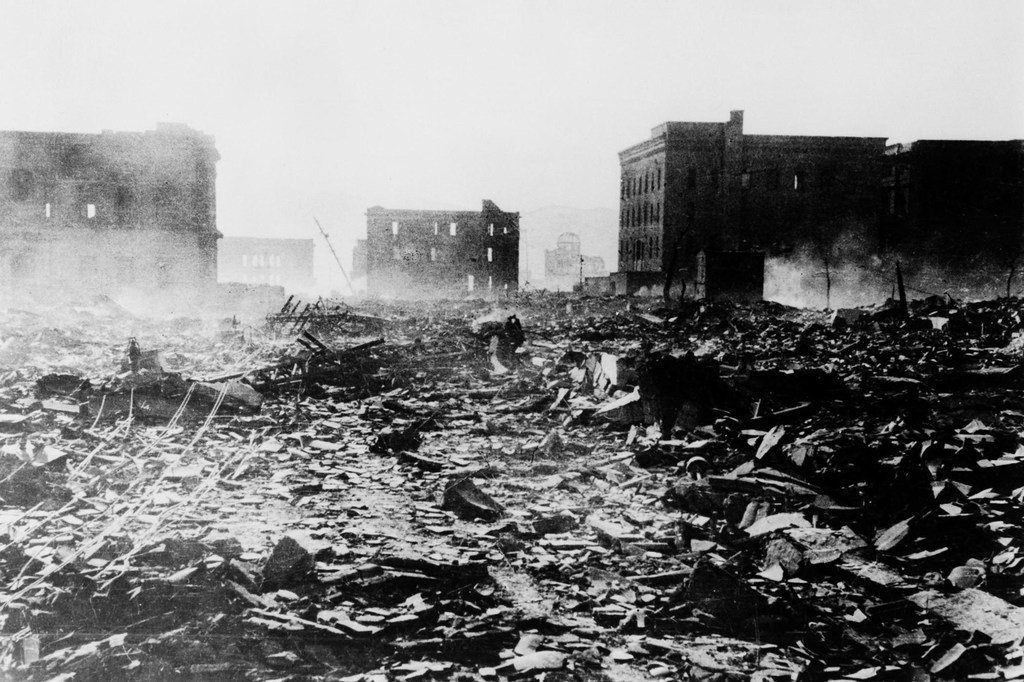Hiroshima, peu après le largage par les États-Unis d’une bombe nucléaire sur la ville japonaise, en août 1945.Photo : ONU/Mitsugu Kishida